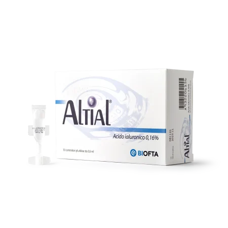 ALTIAL® COMPLETE Eye Drops are a medical device for ophthalmic use consisting of a slightly hyposmolar, sterile, physiological pH, preservative-free solution containing a combination of medium molecular weight hyaluronic acid and liposomes, in 0.5 mL single-dose vials.