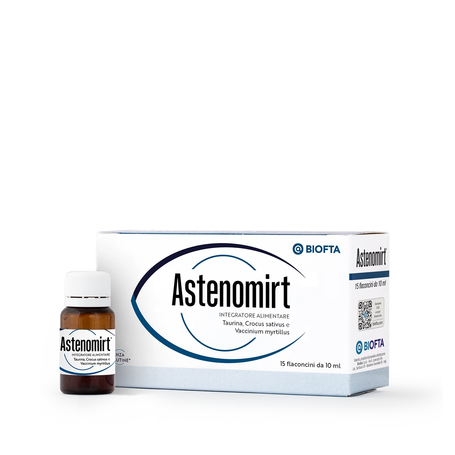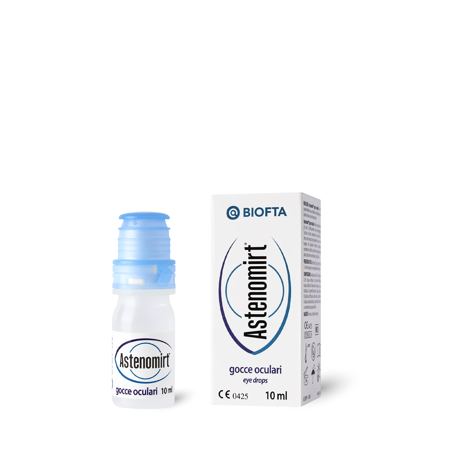 Astenomirt® gocce oculari è un Dispositivo Medico ad uso oftalmico costituito da una soluzione isotonica, sterile, a pH fisiologico, priva di conservanti, a base di acido ialuronico, glicerina e acque distillate, contenuta in flaconi da 10 ml. La combinazione di acido ialuronico e glicerina conferisce alla goccia oculare un’azione protettiva, idratante ed umettante che stabilizza e reintegra il film lacrimale e minimizza gli attriti durante l’ammiccamento. Astenomirt® gocce oculari è indicato per alleviare gli stati di arrossamento ed affaticamento oculare proteggendo l’occhio da fattori ambientali ed atmosferici (inquinamento, smog, salsedine, acqua clorata, vento, polvere, fumo, clima secco, aria condizionata) o stress visivi dovuti principalmente ad un uso prolungato dei dispositivi elettronici (computer, smartphone, tablet), studio intenso, guida prolungata, esposizione prolungata ai raggi solari. Astenomirt® gocce oculari è una soluzione rinfrescante indicata anche per coloro che soffrono di secchezza oculare occasionale o scarsa lacrimazione, donando sollievo agli occhi e ritrovando il benessere quotidiano. Astenomirt® gocce oculari può essere somministrato prima dell’applicazione e durante l’uso delle lenti a contatto per migliorare l’applicazione ed il comfort.